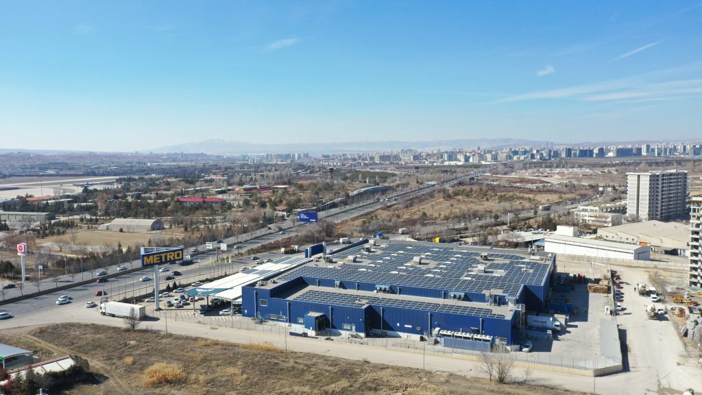 Metro Türkiye, “30 mağazaya 30 MW” sloganıyla gerçekleştirdiği güneş enerjisi sistemi (GES) yatırımının ilk fazını tamamladı. İlk fazda yer alan 15 mağazanın çatılarına ve otopark gölgeliklerine kurulumu yapılan panellerle 18 MW’lık kurulu GES gücüne erişen Metro Türkiye, bu mağazalarının yıllık enerji ihtiyacının yüzde 70’ten fazlasını yenilenebilir enerji ile sağlamaya başladı. Hız kesmeden projenin 2. faz çalışmalarına geçen Metro Türkiye, 500 milyon TL değerindeki GES yatırımı tamamlandığında yaklaşık 110 bin kişinin yıllık enerji tüketimine denk gelen toplam 30 MW üretimi gerçekleştirerek, 30 mağazasında kullandığı elektriğin yaklaşık yüzde 60’ını temiz enerji ile karşılamış olacak. Bu sayede 825 bin ağacın nötrleyebileceği 18 bin ton karbon emisyonunun önüne geçip karbon ayak izini 14 bin tona düşürerek daha sürdürülebilir bir geleceğe katkı sağlayacak.